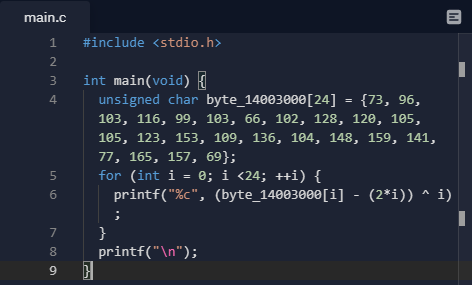 byte_140003000 = {73, 96, 103, 116, 99, 103, 66, 102, 128, 120, 105, 105, 123, 153, 109, 136, 104, 148, 159, 141, 77, 165, 157, 69, 0, 0, 0, 0, 0, 0, 0, 0}